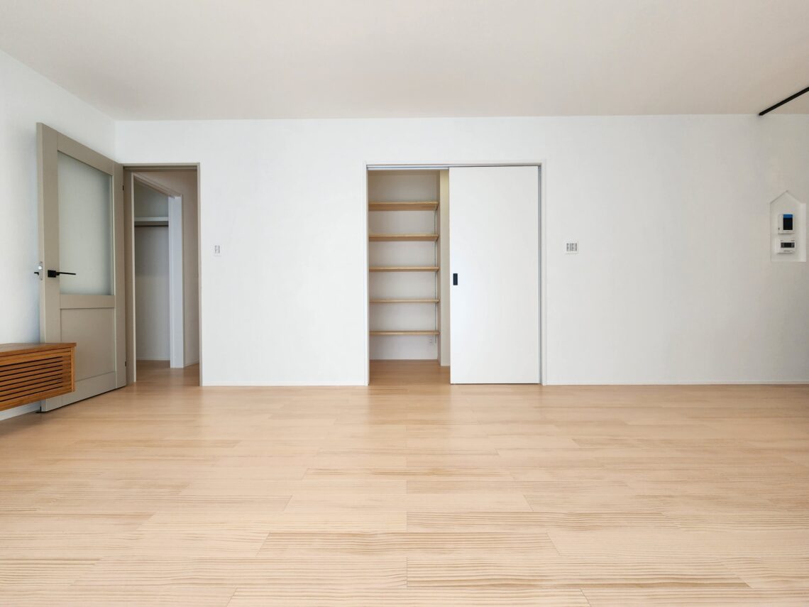 広い空間にウォームベージュを敷くと、全体がやわらかくまとまり、落ち着いた雰囲気になります。