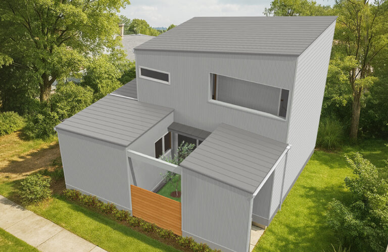 外に閉じて中に開く中庭のある家